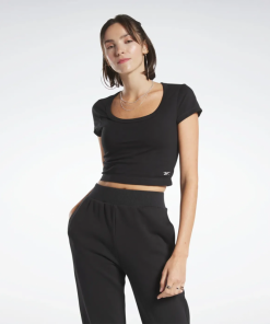 Reebok Women Classics Cropped Jersey T-Shirt- تيشيرت ريبوك كلاسيك كروبيد جيرسي للنساء لون أسود